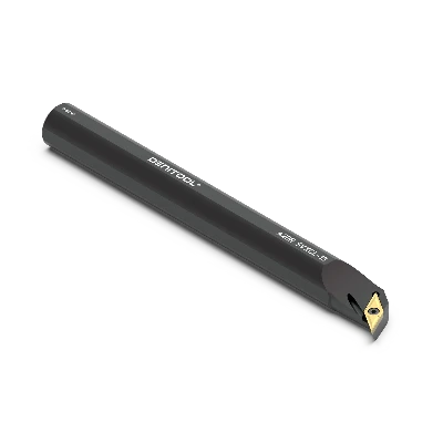 Diese linksschneidende Stahl-Bohrstange mit einem ⌀ 19.05 mm Zoll-Zylinderschaft mit Spannfläche ist 200.00 mm lang und besitzt einen Kühlkanal direkt auf die Wendeplatte der Grösse VC1303 mit einem Einstellwinkel von 113.0°. Der Stahlschaft ist gehärtet und bietet so eine verbesserte Stabilität sowie reduzierte Vibrationen.