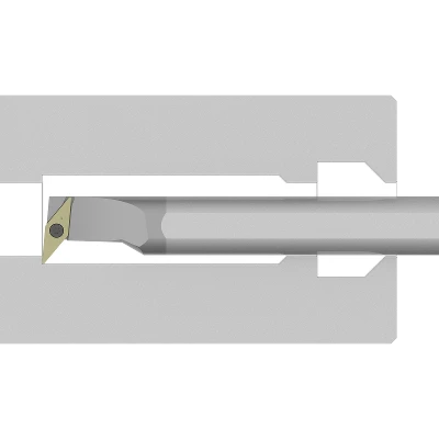 Diese linksschneidende Stahl-Bohrstange mit einem ⌀ 20.00 mm Zylinderschaft mit Spannfläche ist 200.00 mm lang und besitzt einen Kühlkanal direkt auf die Wendeplatte der Grösse VC1303 mit einem Einstellwinkel von 95.0°. Der Stahlschaft ist gehärtet und bietet so eine verbesserte Stabilität sowie reduzierte Vibrationen.