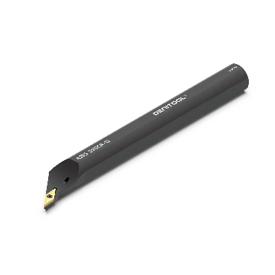 Diese rechtsschneidende Stahl-Bohrstange mit einem ⌀ 25.00 mm Zylinderschaft mit Spannfläche ist 250.00 mm lang und besitzt einen Kühlkanal direkt auf die Wendeplatte der Grösse VC1303 mit einem Einstellwinkel von 5.0°. Der Stahlschaft ist gehärtet und bietet so eine verbesserte Stabilität sowie reduzierte Vibrationen.