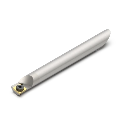Diese rechtsschneidende Hartmetall-Bohrstange mit einem ⌀ 5.00 mm SynTool ist 49.80 mm lang und besitzt keinen Kühlkanal. Die Wendeplatte der Grösse CD0401 muss extern gekühlt werden (Einstellwinkel: 95.0°). Im Vergleich zu einem gehärteten Stahlschaft bietet der Hartmetallschaft eine deutlich höhere Schwingungsdämpfung, was zu einer verbesserten Oberflächengüte und längerer Werkzeugstandzeit führt.
