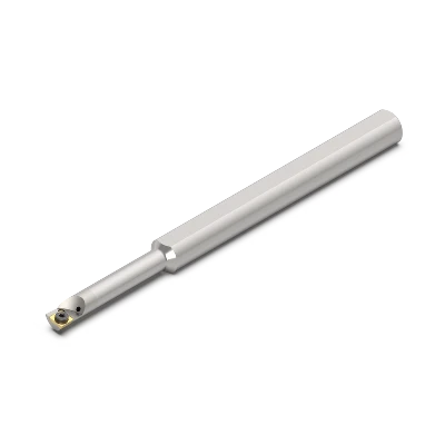 Diese rechtsschneidende Hartmetall-Bohrstange mit einem ⌀ 8.00 mm Zylinderschaft mit Spannfläche ist 100.00 mm lang und besitzt einen Kühlkanal direkt auf die Wendeplatte der Grösse CD0401 mit einem Einstellwinkel von 95.0°. Im Vergleich zu einem gehärteten Stahlschaft bietet der Hartmetallschaft eine deutlich höhere Schwingungsdämpfung, was zu einer verbesserten Oberflächengüte und längerer Werkzeugstandzeit führt.