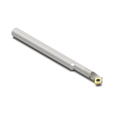 Diese linksschneidende Hartmetall-Bohrstange mit einem ⌀ 8.00 mm Zylinderschaft mit Spannfläche ist 100.00 mm lang und besitzt einen Kühlkanal direkt auf die Wendeplatte der Grösse CP05T1 mit einem Einstellwinkel von 50.0°. Im Vergleich zu einem gehärteten Stahlschaft bietet der Hartmetallschaft eine deutlich höhere Schwingungsdämpfung, was zu einer verbesserten Oberflächengüte und längerer Werkzeugstandzeit führt.
