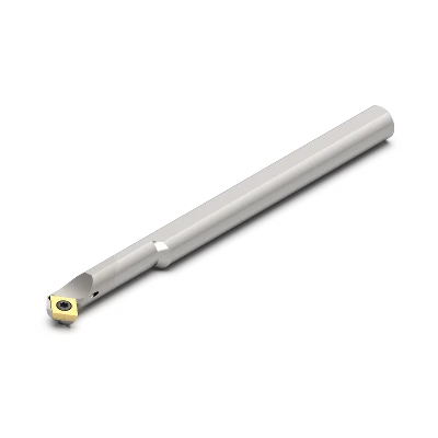Diese rechtsschneidende Hartmetall-Bohrstange mit einem ⌀ 8.00 mm Zylinderschaft mit Spannfläche ist 100.00 mm lang und besitzt einen Kühlkanal direkt auf die Wendeplatte der Grösse CP05T1 mit einem Einstellwinkel von 50.0°. Im Vergleich zu einem gehärteten Stahlschaft bietet der Hartmetallschaft eine deutlich höhere Schwingungsdämpfung, was zu einer verbesserten Oberflächengüte und längerer Werkzeugstandzeit führt.