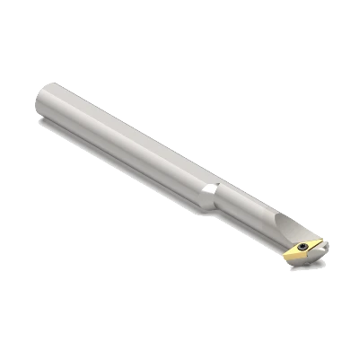 Diese linksschneidende Hartmetall-Bohrstange mit einem ⌀ 9.53 mm Zoll-Zylinderschaft mit Spannfläche ist 100.00 mm lang und besitzt einen Kühlkanal direkt auf die Wendeplatte der Grösse VC0702 mit einem Einstellwinkel von 95.0°. Im Vergleich zu einem gehärteten Stahlschaft bietet der Hartmetallschaft eine deutlich höhere Schwingungsdämpfung, was zu einer verbesserten Oberflächengüte und längerer Werkzeugstandzeit führt.
