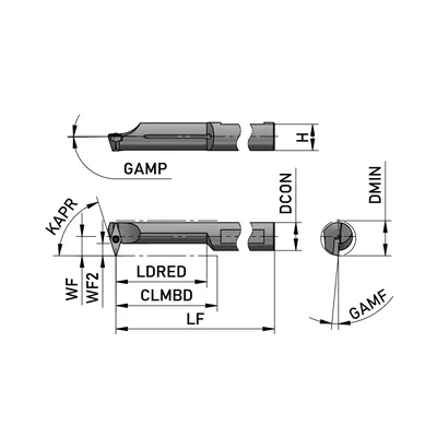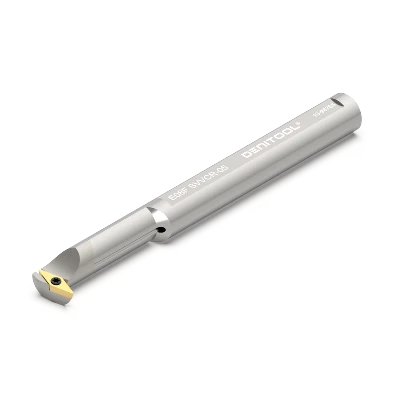 Diese rechtsschneidende Hartmetall-Bohrstange mit einem ⌀ 8.00 mm Zylinderschaft mit Spannfläche ist 80.00 mm lang und besitzt einen Kühlkanal direkt auf die Wendeplatte der Grösse VC0501 mit einem Einstellwinkel von 72.5°. Im Vergleich zu einem gehärteten Stahlschaft bietet der Hartmetallschaft eine deutlich höhere Schwingungsdämpfung, was zu einer verbesserten Oberflächengüte und längerer Werkzeugstandzeit führt.