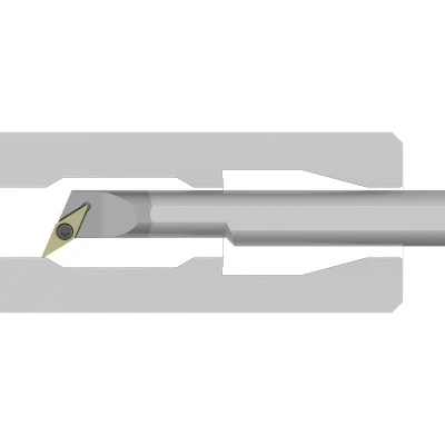 Diese linksschneidende Hartmetall-Bohrstange mit einem ⌀ 12.70 mm Zoll-Zylinderschaft mit Spannfläche ist 125.00 mm lang und besitzt einen Kühlkanal direkt auf die Wendeplatte der Grösse VC0702 mit einem Einstellwinkel von 113.0°. Im Vergleich zu einem gehärteten Stahlschaft bietet der Hartmetallschaft eine deutlich höhere Schwingungsdämpfung, was zu einer verbesserten Oberflächengüte und längerer Werkzeugstandzeit führt.