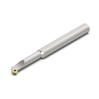 Diese rechtsschneidende Hartmetall-Bohrstange mit einem ⌀ 12.70 mm Zoll-Zylinderschaft mit Spannfläche ist 125.00 mm lang und besitzt einen Kühlkanal direkt auf die Wendeplatte der Grösse CP05T1 mit einem Einstellwinkel von 50.0°. Im Vergleich zu einem gehärteten Stahlschaft bietet der Hartmetallschaft eine deutlich höhere Schwingungsdämpfung, was zu einer verbesserten Oberflächengüte und längerer Werkzeugstandzeit führt.