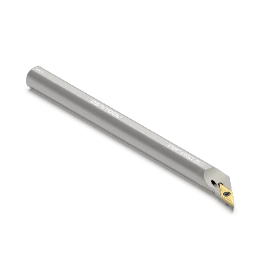 Diese linksschneidende Hartmetall-Bohrstange mit einem ⌀ 15.88 mm Zoll-Zylinderschaft mit Spannfläche ist 200.00 mm lang und besitzt einen Kühlkanal direkt auf die Wendeplatte der Grösse VC1303 mit einem Einstellwinkel von 5.0°. Im Vergleich zu einem gehärteten Stahlschaft bietet der Hartmetallschaft eine deutlich höhere Schwingungsdämpfung, was zu einer verbesserten Oberflächengüte und längerer Werkzeugstandzeit führt.