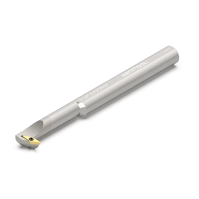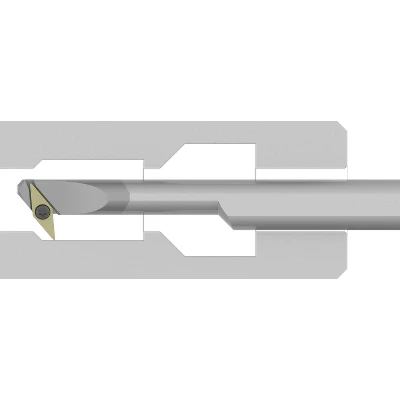 Diese rechtsschneidende Hartmetall-Bohrstange mit einem ⌀ 12.00 mm Zylinderschaft mit Spannfläche ist 125.00 mm lang und besitzt einen Kühlkanal direkt auf die Wendeplatte der Grösse VC0702 mit einem Einstellwinkel von 95.0°. Im Vergleich zu einem gehärteten Stahlschaft bietet der Hartmetallschaft eine deutlich höhere Schwingungsdämpfung, was zu einer verbesserten Oberflächengüte und längerer Werkzeugstandzeit führt.