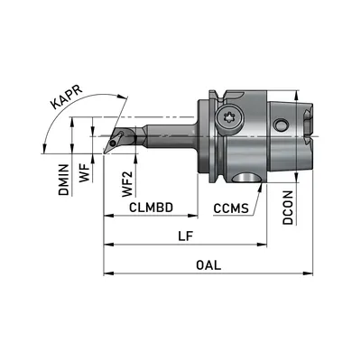 Diese rechtsschneidende Stahl-Bohrstange mit einem ⌀ 32.00 mm HSK-A32 CHIRON with Precision⁺ ist 48.00 mm lang und besitzt einen Kühlkanal direkt auf die Wendeplatte der Grösse VC0501 mit einem Einstellwinkel von 113.0°. Der Stahlschaft ist gehärtet und bietet so eine verbesserte Stabilität sowie reduzierte Vibrationen.