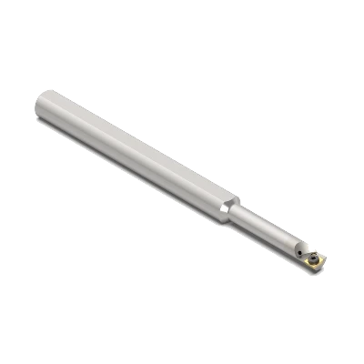 Cette barre d’alésage en carbure à coupe à gauche avec une ⌀ 7.94 mm tige cylindrique en pouces avec surface de serrage est 100.00 mm de long et est équipée d’un canal de refroidissement directement sur la plaquette de taille CD0401 avec un angle de réglage de 95.0°. Comparé à une tige en acier trempé, le carbure offre un amortissement des vibrations nettement supérieur, ce qui améliore la qualité de surface et prolonge la durée de vie de l’outil.